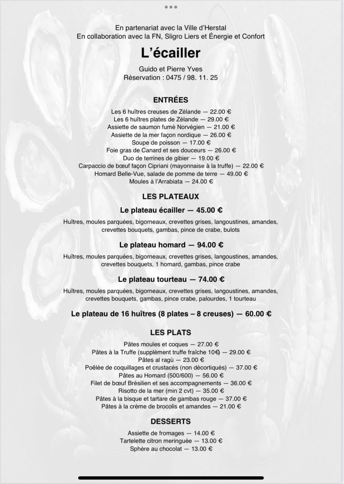 Du 4 au 30 décembre, La Maison de Maitre vous accueille sous chapiteau chauffé, juste en face du restaurant, dans le cadre de l’Écailler d’Herstal.